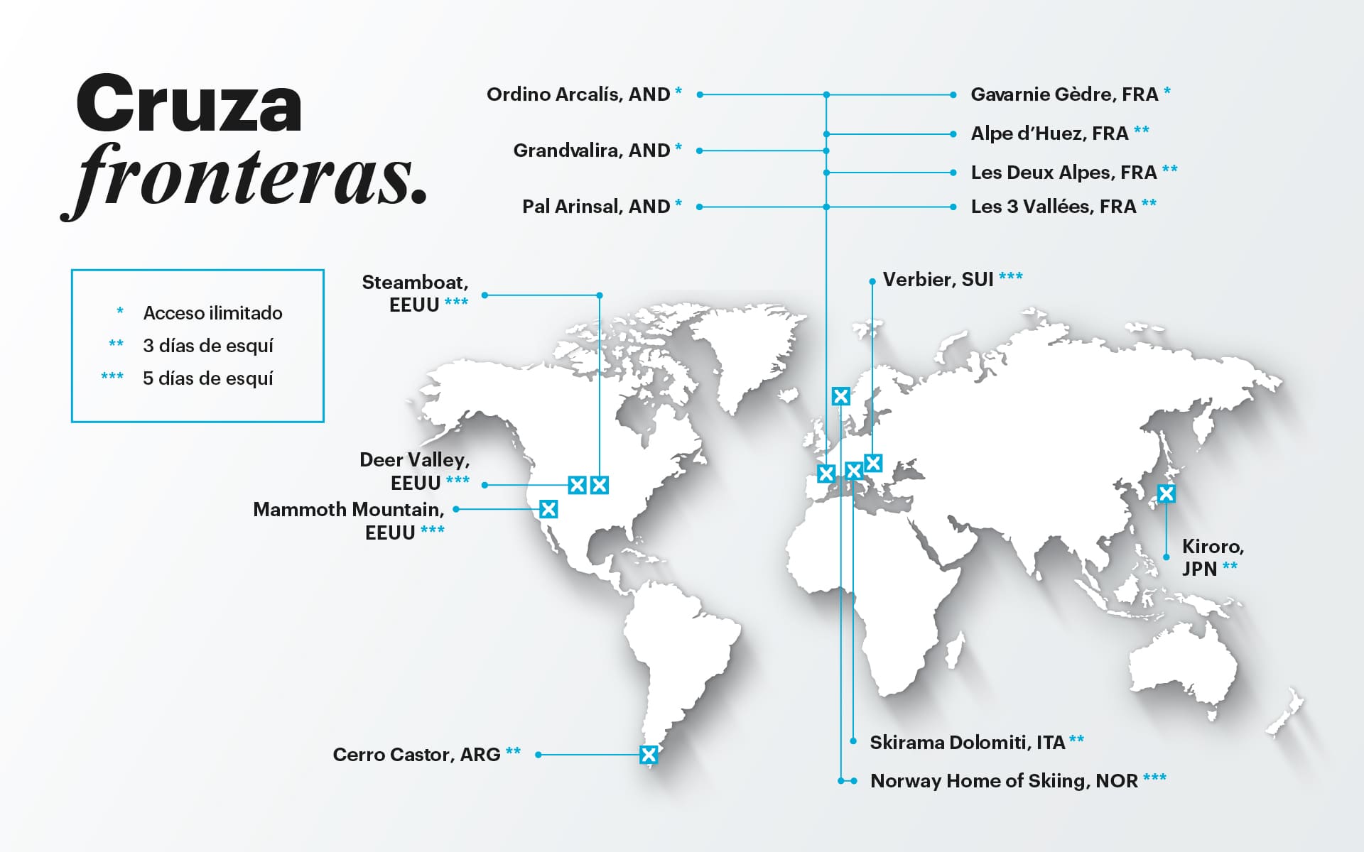 Andorra Pass es el forfait de temporada que te permite visitar otras estaciones internacionales de Europa, América e incluso Asia, además de beneficiarte de ventajas exclusivas en las estaciones de Grandvalira Resorts.